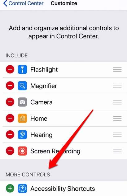 - If the QR code reader icon doesn’t appear in your iPhone’s Control Center, go to **Settings **>** Control Center **>** Customize controls** and then go to **More Controls** section.