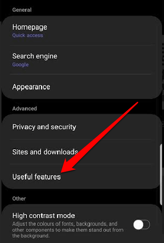 - Next, tap **Useful Features**.