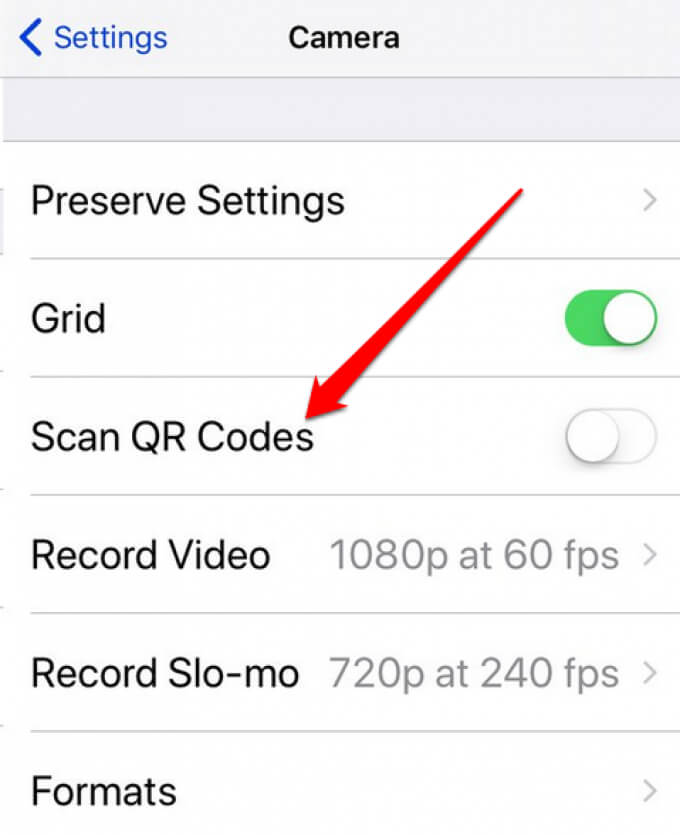 - Next, tap the **QR Code** switch to toggle it **ON** and try to scan the code again.