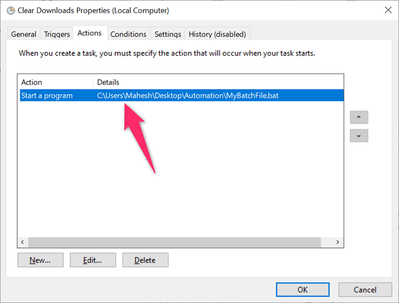 Edit or Delete a Batch File Task in Task Scheduler on Windows