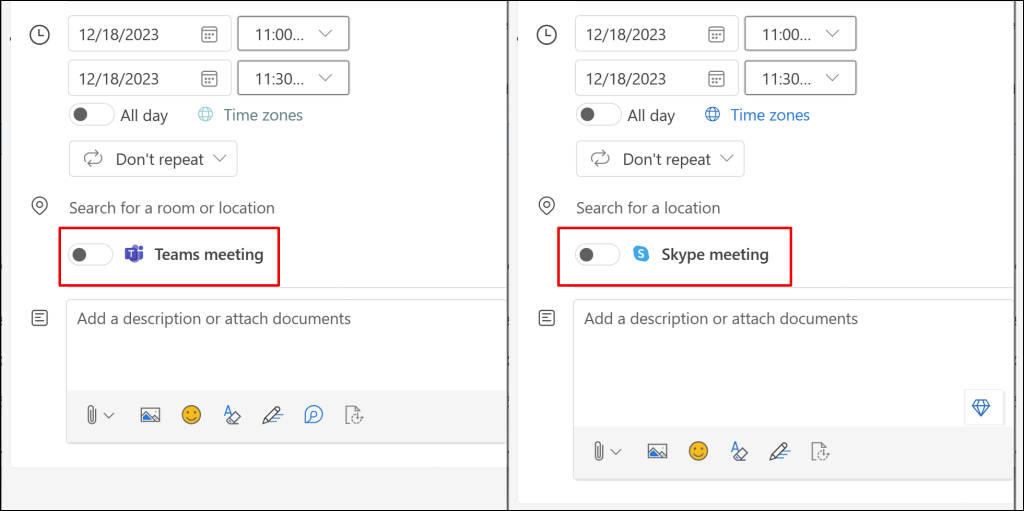 If you don’t see the “Teams Meeting” option, check that you’re scheduling the meeting from the correct account.
