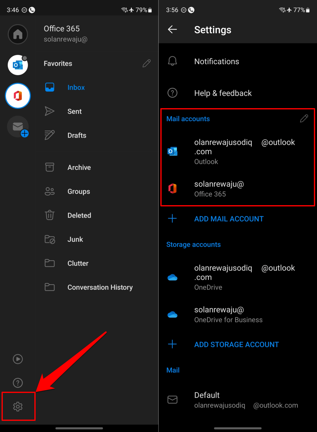 - Open Outlook, tap your profile icon/picture, and select the Settings icon in the bottom-left corner.