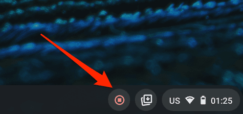 When the screen recording commences, you should see a red-colored stop icon close to the Status area—the bottom-right corner of the screen. Clicking the icon will immediately stop the recording and save the file.