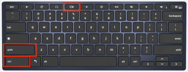 Press and hold Control + Shift + Overview mode (or Show windows key) to launch the Chrome OS snipping tool.