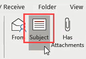 To search Outlook email by subject: