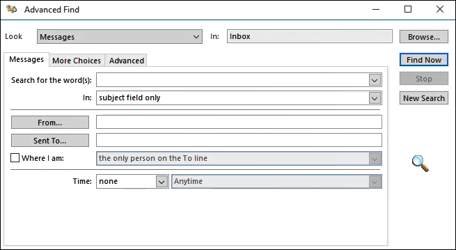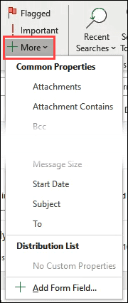 Take some time and look around here. It’s overwhelming how much can be done. We can search based on any field of any Outlook item. There are a few hundred different things we can search on.