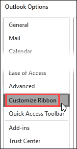 - In the Options window, click on Customize Ribbon.