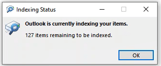 What’s indexing? Just like the index of a book has all the topics listed and where to find them, Outlook indexing creates a database like that. It’s easier for programs to search through a database than a bunch of freeform text.