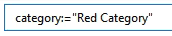 This can also be typed in manually. Just change the color to suit the category. For example, to search the red category, we’d type category:=”Red Category”. For blue, we’d type category:=”Blue Category” and so on.