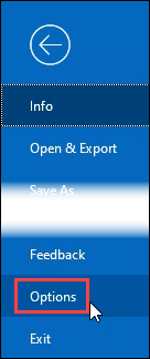 - Click on Options on the left side, about halfway down.