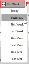 - Whatever is selected it will be entered in the Instant Search field like; received:today, received:yesterday, received:this week, received:last week, received:this month, received:last month, received:this year, received:last year Hit the **Enter **key to search.