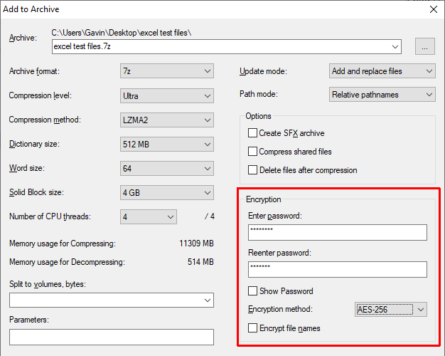 A great method for encrypting multiple Excel files at the same time is to use the free archive tool, 7-Zip to password protect multiple Excel files. You can use 7-Zip to encrypt a whole folder of individual Excel files, password protecting an entire selection of Excel spreadsheets rather than one at a time.