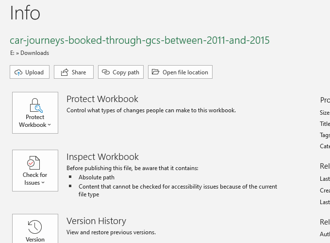 In Excel, head to **File > Info. **Select Protect Workbook, then Encrypt with Password from the dropdown menu.