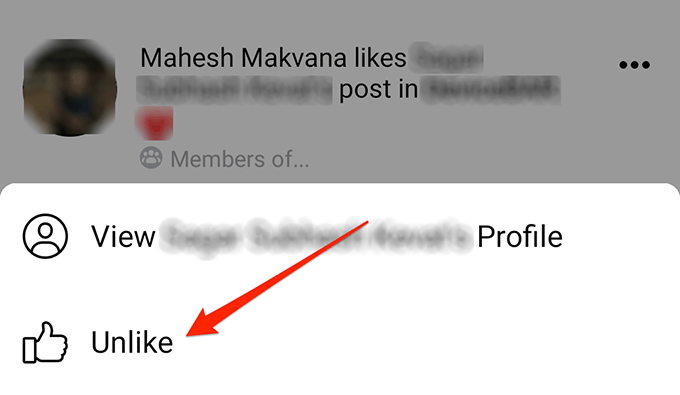 - The app also offers you the option to unlike any posts if you want to do it. Tap on the three-dots next to the post you want to unlike and select Unlike.