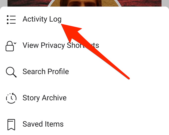 - When your profile opens, you’ll find four options right beneath your account name. Tap on the option that says More to view more options. Then select Activity Log from the newly opened menu.