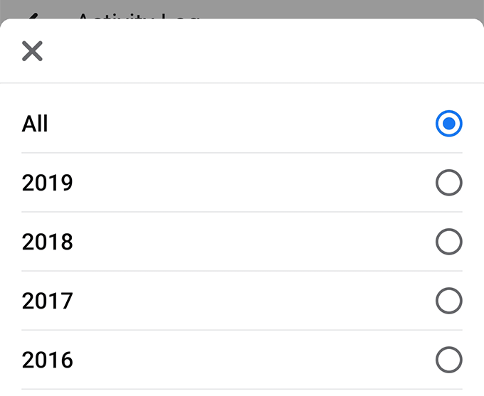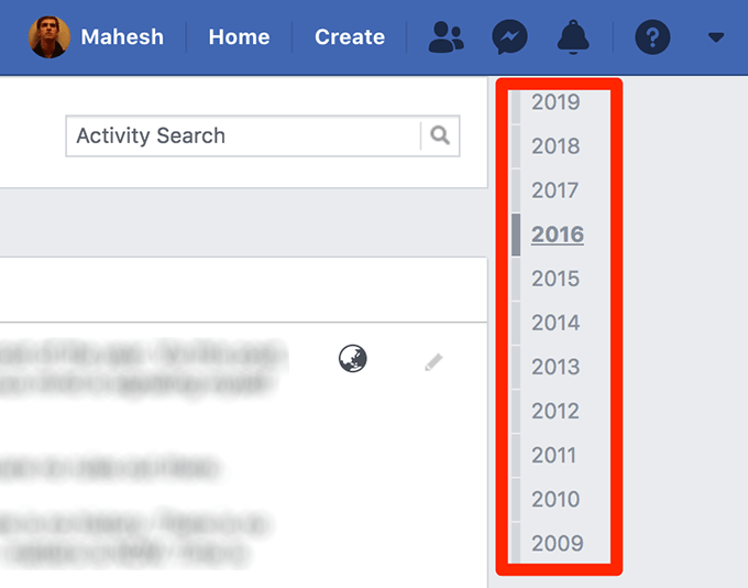 - If you want to view your Facebook likes from a particular year, say 2016, you can do so by clicking on the year number in the right-hand side menu.