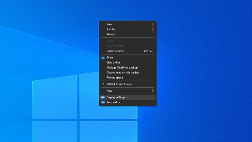 - Right-click on the Desktop and select Display Settings.