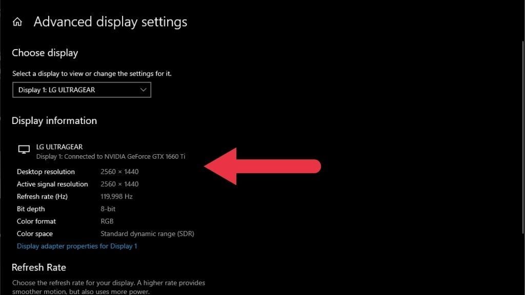 This method shows you the GPU connected to a particular display. If you’re checking the information for a display connected to a different GPU or something like a portable USB screen, it may not show your primary graphics card information.