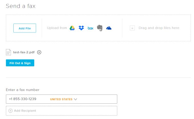 Select Add File to add the document you want to fax. Type the fax number you want to send the fax to in the Enter a fax number section.
