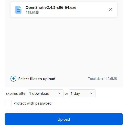 Firefox Send lets you upload up to 2 GB of data (or 2.5 GB if you log in) at a time that can expire after anywhere from one to 100 downloads, or after five minutes, one hour, one day, or one week. You can also password protect the download.