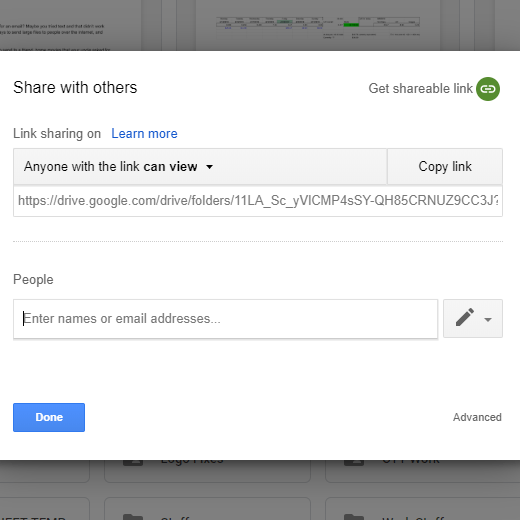 Step 3: Copy the link you see in the text box and share it with the person you’re sending the file to.