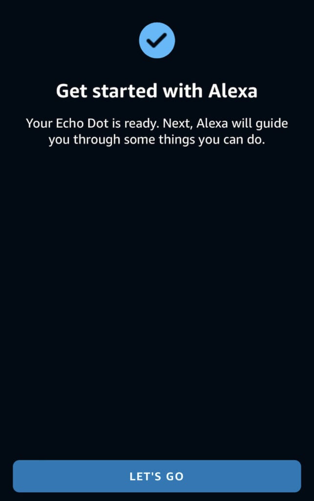 - The Alexa app will present you with a video that shows the features of the device. After this, select **Let’s Go** to get started using your new Echo Dot.