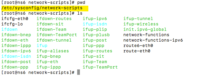 In many Linux distributions, configuration files are found in the network-scripts directory under the “etc/sysconfig” path. If they’re not located there, it’s likely that there’s a similar location/path. The files that are present in this particular case are shown in the screenshot below.