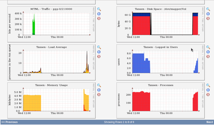The front end can accommodate plenty of users and is sometimes used by hosting services to display real-time bandwidth information and other data in the following graphs..