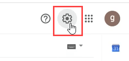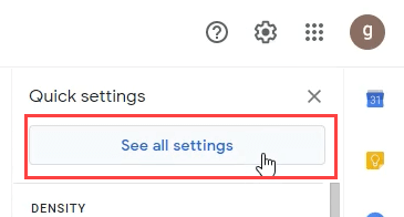 - * Log in to your Gmail account and click on the **Settings **icon in the top-right corner. It looks like a gear. The **Quick Settings **toolbar will open.
