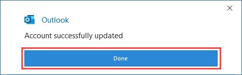 - If all went well, you’ll see the **Account successfully updated **window. Click on **Done **to finish.