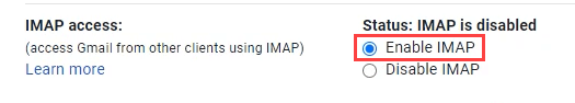 - Scroll down to the **IMAP access:** section and select **Enable IMAP**.