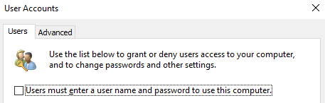 Set Up Windows 10 to Login Automatically via User Account Settings