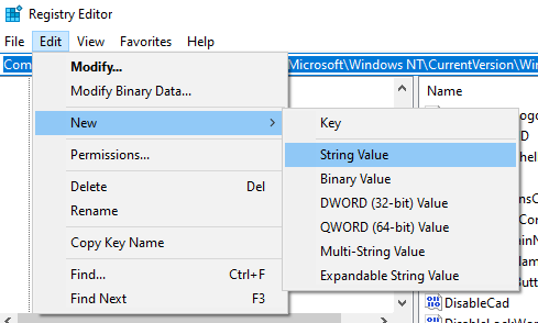 - Enter your password and select the **OK** button. * Next, create an entry for automatic logins by selecting **Edit **> **New **>** String Value**. * Name the new string value **AutoAdminLogon **and select the **OK** button. * Double-click on the new **AutoAdminLogon** entry. * In the **EditString** box, enter the number “**1**” in the **Value data **field. * Select the **OK** button. These are the three registry values you have to add shown below.
