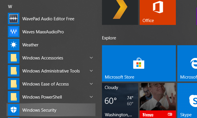 - Search for Windows Security in the lower left-hand corner of your desktop. Or you can scroll through your apps and click on it.