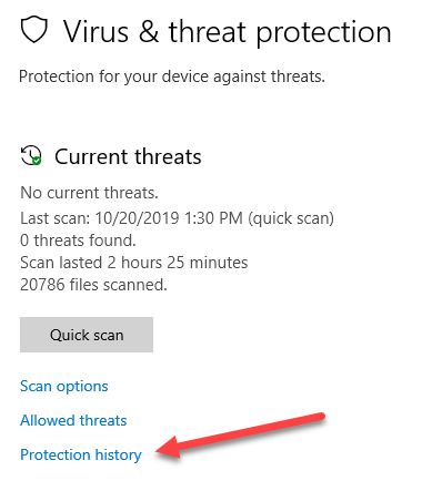 The results are recorded when you run a Windows Defender scan. To view them, open the Windows Security app by searching for Defender from the Start menu.