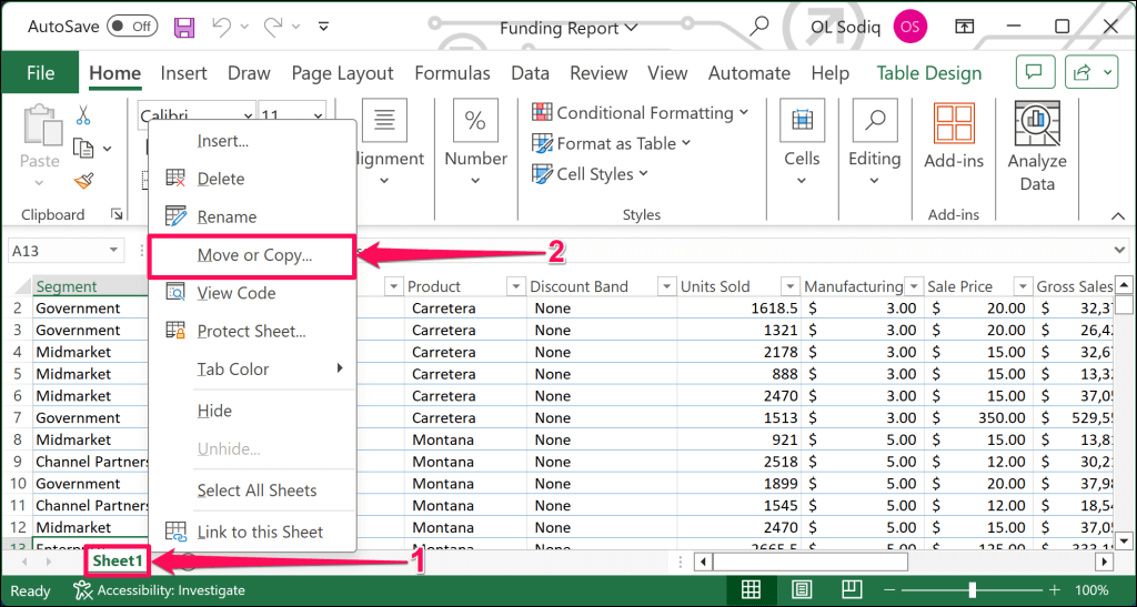- * First, duplicate the worksheet (to a new workbook) to avoid losing the data in the original workbook. Right-click the sheet in the worksheet tab and select Move or Copy on the action menu.