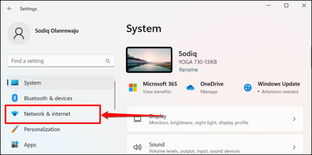 - Open Settings (press **Windows key** + **I**) and select **Network & internet** on the sidebar.