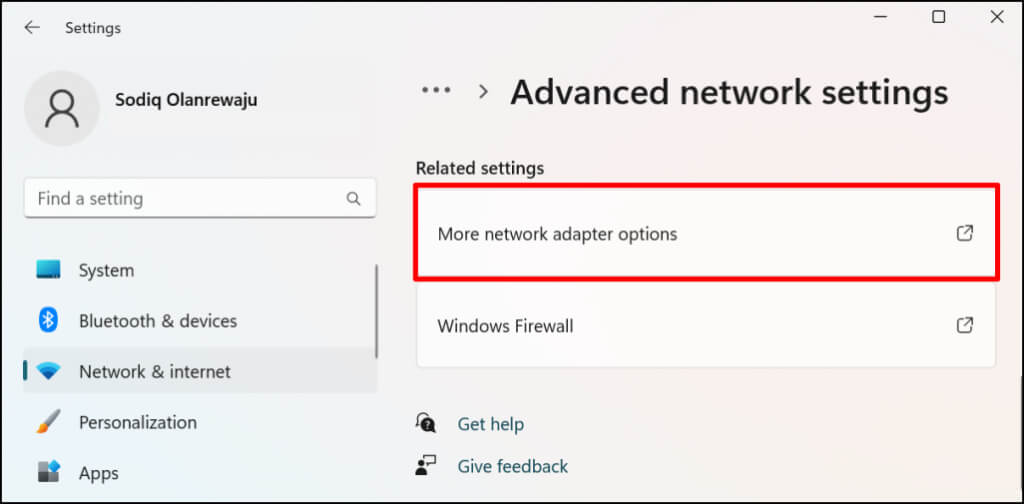 - Scroll to the Related settings section and select **More network adapter options**.