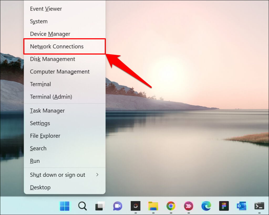 A quicker alternative is to right-click the Start menu or press Windows key + X and select Network Connections.