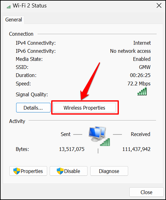- Select the **Wireless Properties** button.
