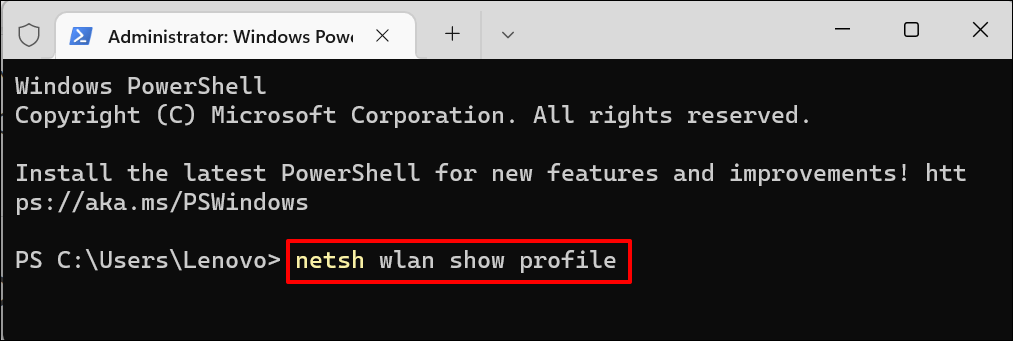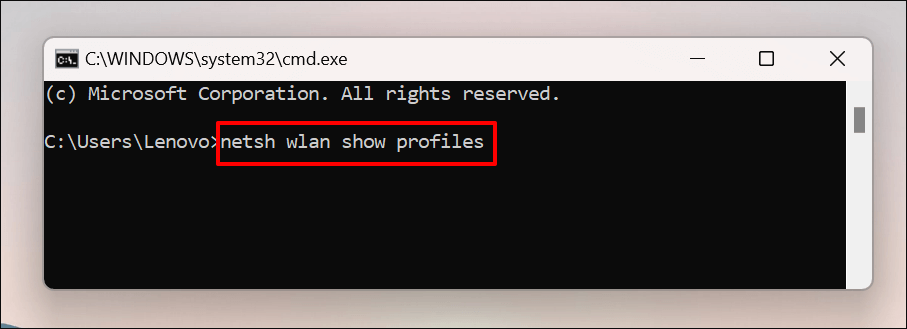 - Type or paste **netsh wlan show profile** in the terminal and press **Enter**.
