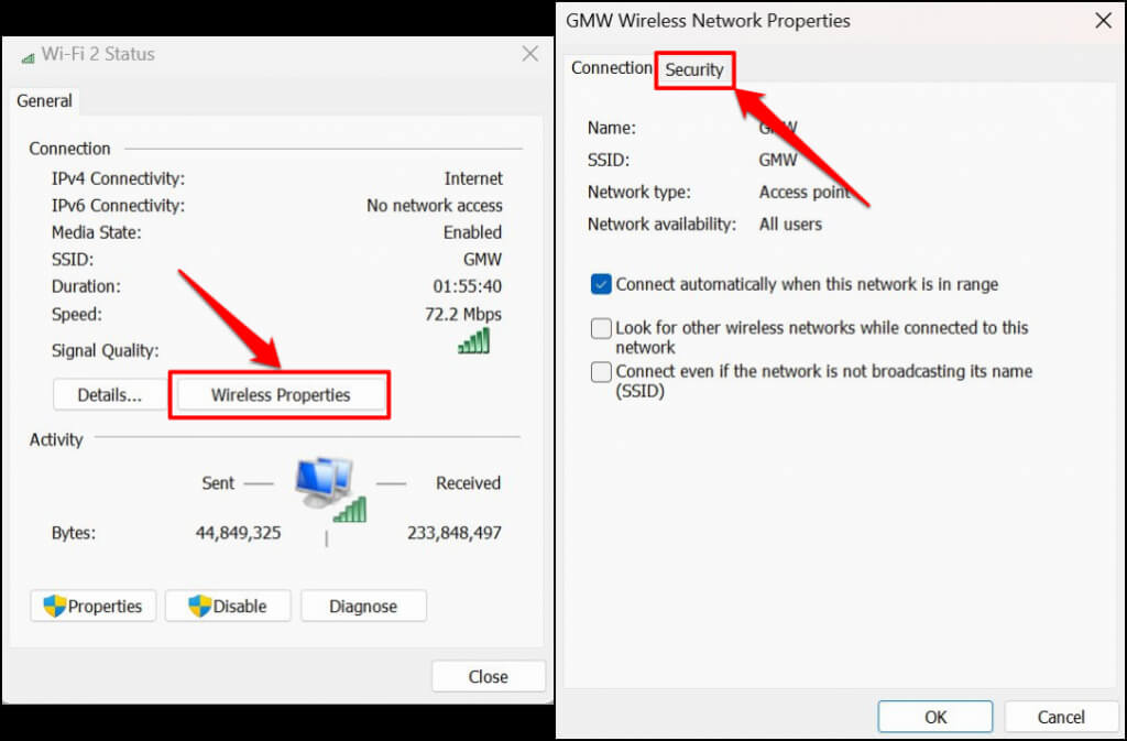 - Select **Wireless Properties** and head to the **Security** tab on the next page.