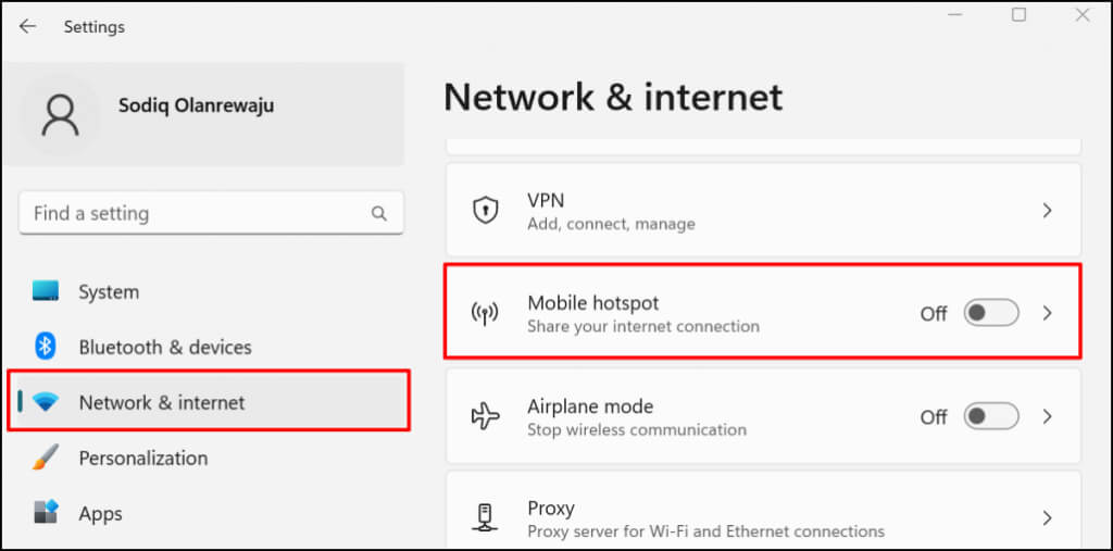 - Go to Settings > Network & internet and select Mobile hotspot.