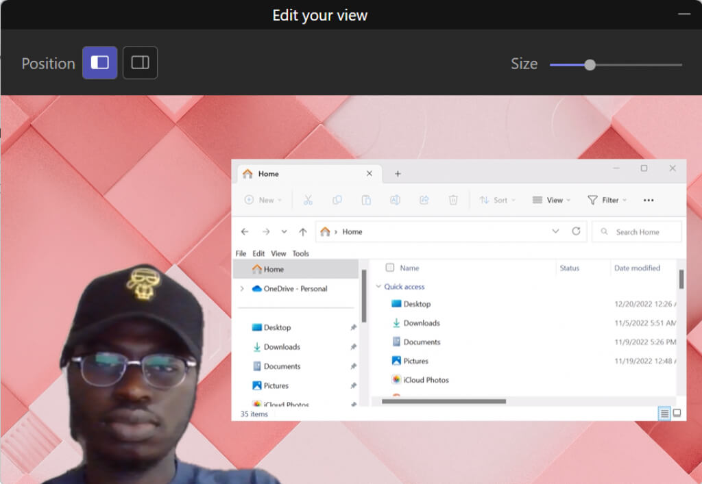 This mode puts you (the presenter) and the content of your screen in a side-by-side grid layout.