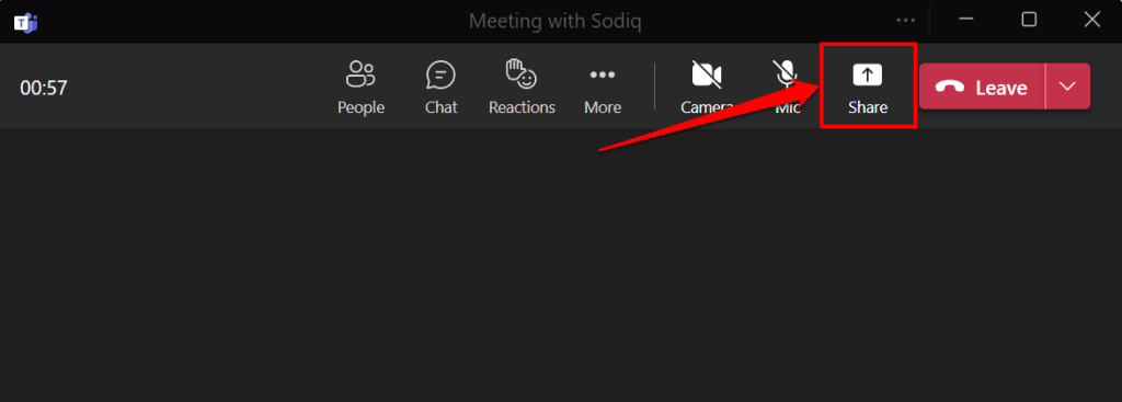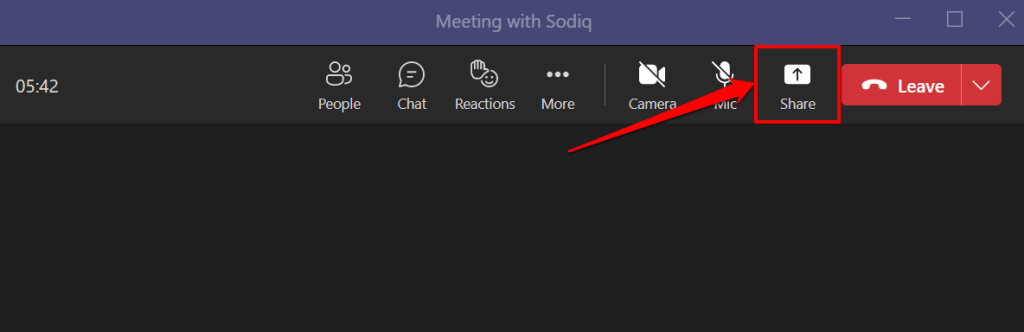 - Open the meeting window and select Share or press Ctrl + Shift + E.