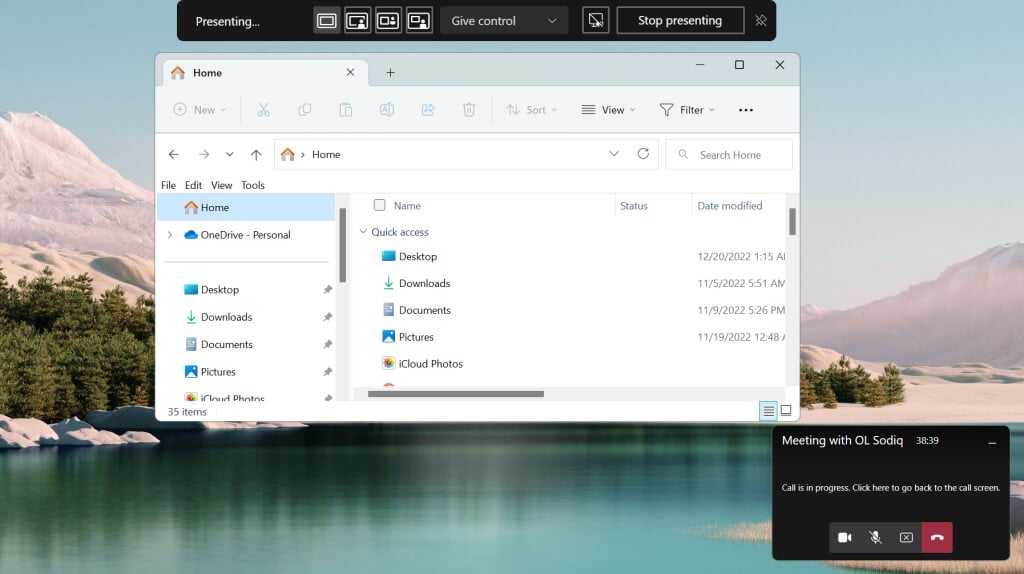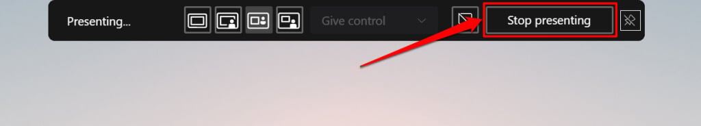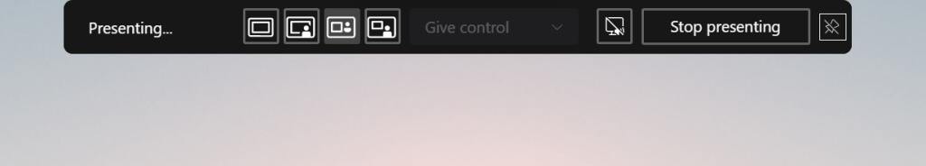 On the toolbar, you can stop presenting, switch presenter modes, and give control to another participant in the meeting.
