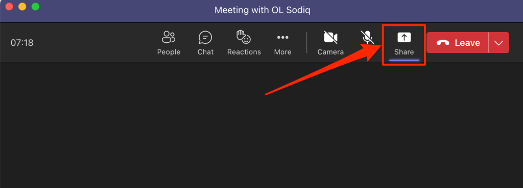 - Select the Share icon in the meeting window or press Command + Shift + E.