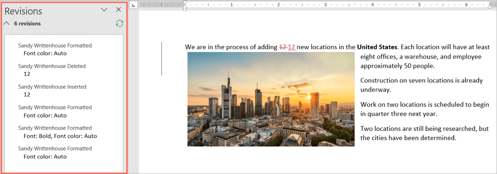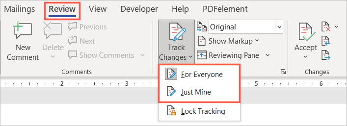 To keep track of all edits in a document, you can turn on the Track Changes feature for everyone or even just for yourself. This is a helpful way to make sure no change goes in unnoticed.