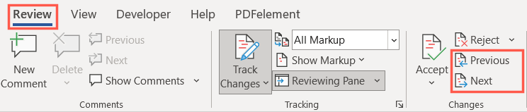 Also, you can review changes by jumping directly to each one rather than hunting them down in the document.