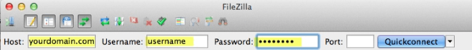 Start by opening your FTP client and put in your host. This is usually your domain address, your username and password. If you are not sure what they are, contact your web host.